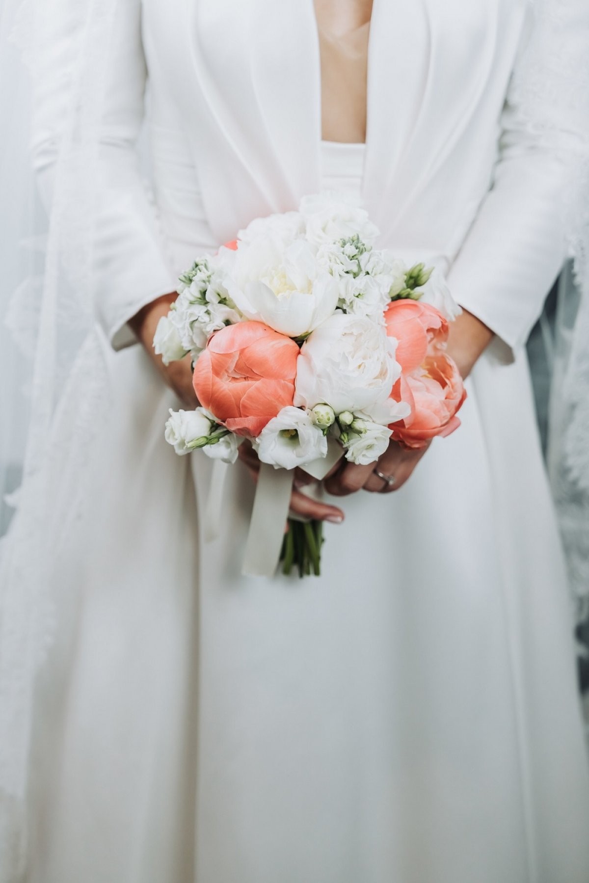 Bouquet de mariée, boutonnières, couronnes, bracelets, décoration voiture,... Centre de table, décoration de lustre, arche fleurie,...