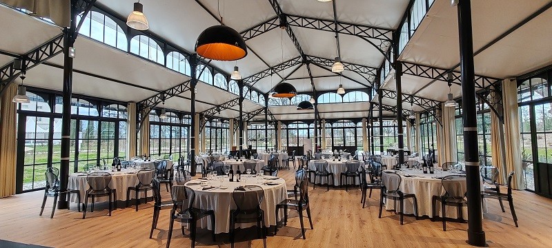 Mobilier : Sur l’Orangerie : 15 Tables rondes, 12 Tables rectangles, chaises pour 150 personnes, une estrade, micros, écran géant, vidéo projecteur, espace traiteur, portant vestiaire, plusieurs salons de jardin avec tables basses pour l’extérieur, parasols sous disponibilités