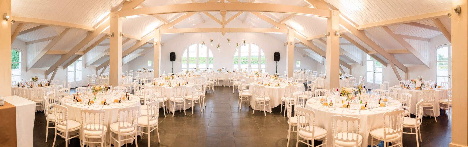 A l’image de l’identité du Château, nos espaces réceptifs combinent avec habileté un style clair et épuré qui a su conserver le charme de la bâtisse d’antan : sous les toits, elles se parent ainsi de somptueuses poutres de bois apparentes pour contrebalancer une signature résolument contemporaine. Intemporelles, les salles sont neutres et entièrement personnalisables à l’image de votre mariage