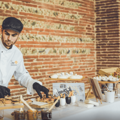 Toute l'équipe est passionnée par la bonne cuisine, les bons produits et les belles rencontres. Nous avons à cœur de travailler de manière responsable, tout est fait maison, avec des produits frais, locaux et de saison. Nous ne faisons pas de cuisine d'assemblage et ne travaillons pas avec des produits industriels. Nous faisons nos confitures et fruits confits, nos foies gras, nos pickles, nos fonds, nos crèmes, nous n'achetons pas de produits prêts à être cuisinés ou sous atmosphère modifiée, nous épluchons des légumes ( beaucoup), nous lavons les salades, nous parons nos filets de poissons et de viandes, nous tranchons, râpons, éminçons, bref, nous cuisinons ... Nous avons envie de donner du plaisir et d’offrir des moments de partage gourmands, nous accompagnons nos clients sur des mariages mais aussi sur des évènements professionnels et privés à Toulouse et partout ou l'on a besoin de nous