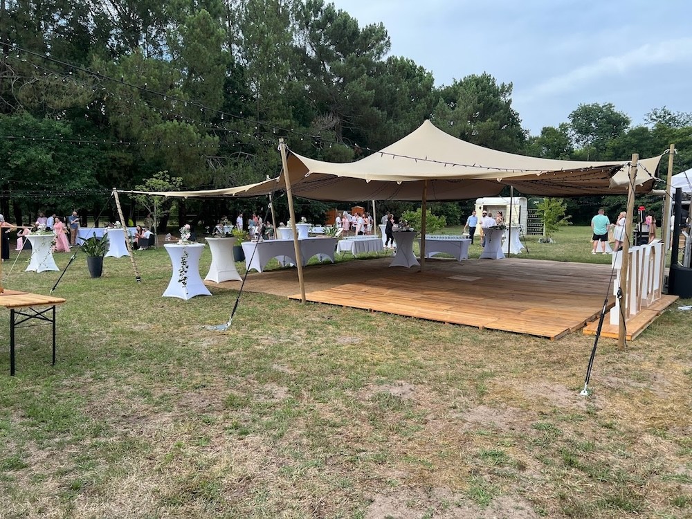 Aujourd’hui, nous pouvons aussi vous proposer la location de chapiteaux, plancher, tables rondes ou rectangles, chaises, bancs, nappages, serviettes et housses de chaises ainsi que la vaisselle au grand complet et aussi une tente stretch.